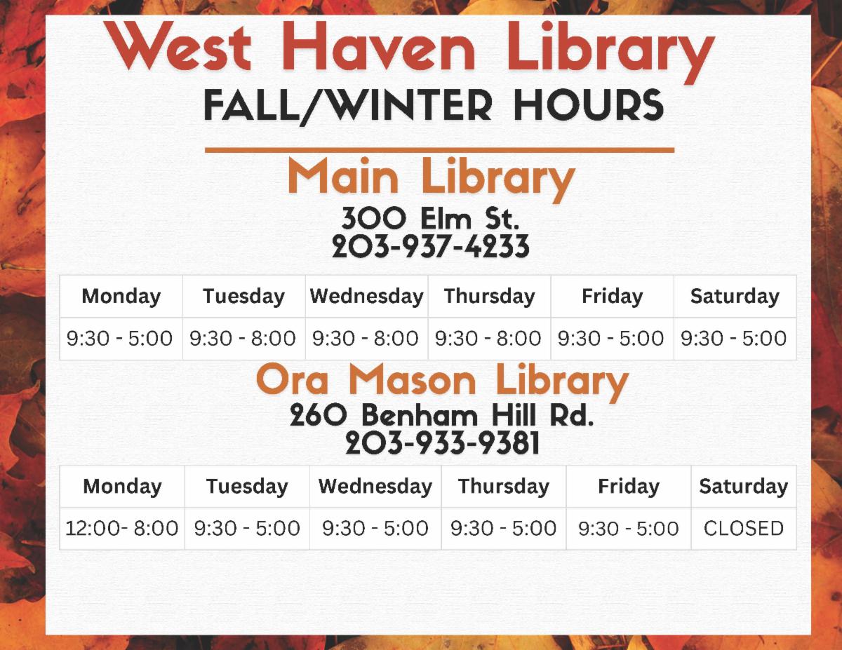 The Library will be closed on Monday, October 13th, in observance of the holiday. Support the Friends of West Haven Library in their upcoming fundraiser! Check out our Documentary Film with ViewPoint! Follow us!